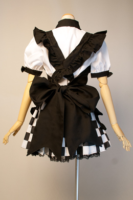 衣装としてはオーソドックスなブラウスに白黒チェックのスカート、これにフリルエプロンを付けることから、どうやらメイド衣装がデザインの基本にあるようです。